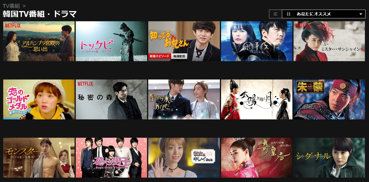 韓流ドラマ韓流ドラマは他の動画配信サービスと遜色ないラインナップ。